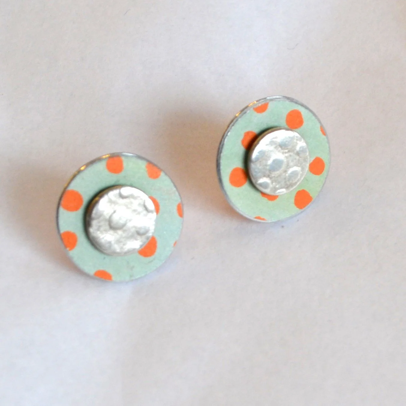 Categories: All Silver earrings drop earrings studs necklace ring bangle / bracelets brooch sealed print on wood textile / mixed media cufflinks keyrings All / earrings / studs Triangle studs + gemstones £42.00 Flat links with silver disc £48.00 Flat link with brass oval £48.00 Tree studs £24.00 Double disc * sage & orange dot £40.00 Double disc * orange & turquoise £32.00 Double disc * green & blue £32.00 Turquoise disc * yellow spots £36.00 Spotted butterflies £14.00 Multi colour acrylic studs £43.00 Acrylic red/brown studs £29.00 Candy stripe studs £43.00 Turquoise studs £15.00 Green & white studs £15.00 Red & white studs £15.00 Blue & white studs £15.00 Candy stripe studs £42.00 Leaf studs * turquoise £75.00 Leaf studs * red £75.00 Leaf studs * lilac £75.00 Brass hoop silver disc studs £36.00 Sold Porcelain disc studs - Pink and white £15.00 Barnacle studs - soft olive £72.00 Barnacle studs - turquoise green £72.00